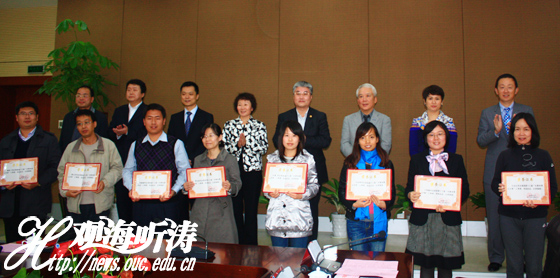 中国海洋大学党委宣传部,学生工作处,人事处,教务处,“985工程”办公室、“211工程”办公室等有关部门负责人参加了颁奖仪式。