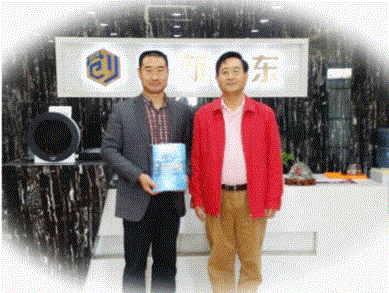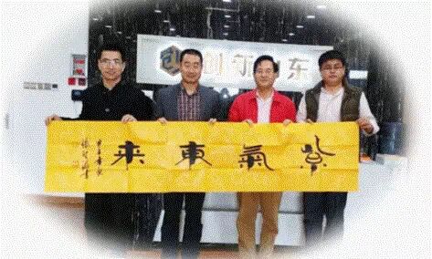 为表达谢意与尊敬之情,李新峰主任赠予王诗成先生“紫气东来”拓片。并在中心“创新山东”前台留影纪念。