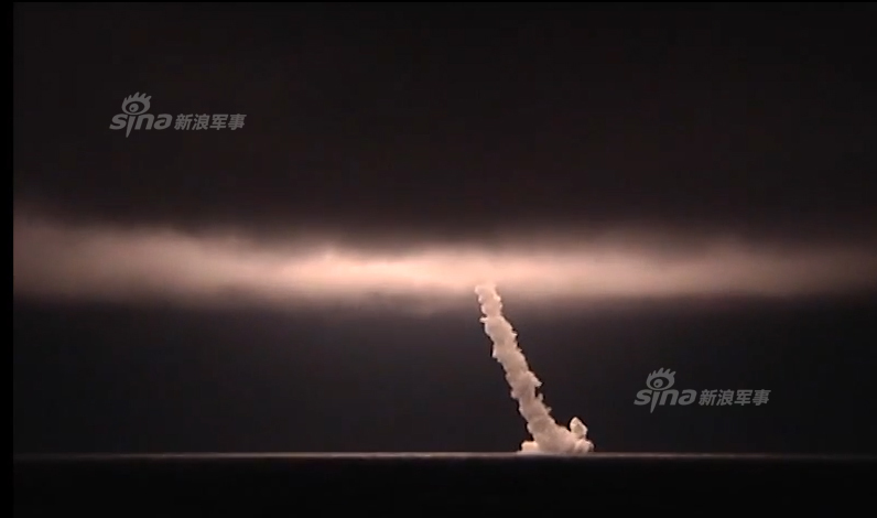 俄北风之神核潜夜射布拉瓦导弹 场景似科幻大片