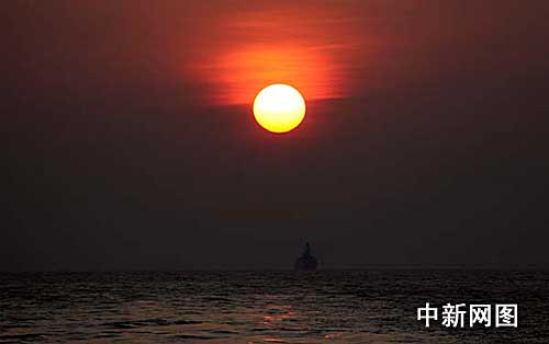 总算没有枉费自己的一番早起与苦等,手持相机拍下了日出阿拉伯海的全过程,正好太阳下方是我们编队的“武汉”号导弹驱逐舰,从而使得照片的构图和层次感更加丰富了一些。