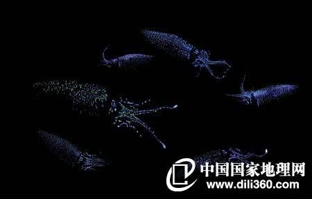 栖息在海洋中层带的萤火鱿只能勉强算作深海生物,但它们有着深海生物的特点—可以发光。头足类发光器的分布、大小及结构,都随动物垂直分布的深度而不同。萤火鱿的主要发光器长在触手尖端,它们用这些明暗闪烁的光来吸引猎物,然后用强有力的触手抓住猎物。