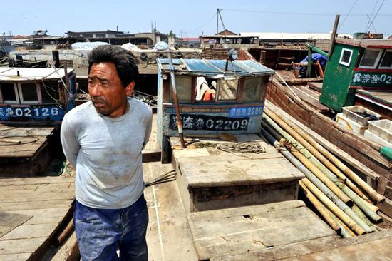 河北省滦南县南堡村渔民许爱发抱怨现在打鱼越来越困难。