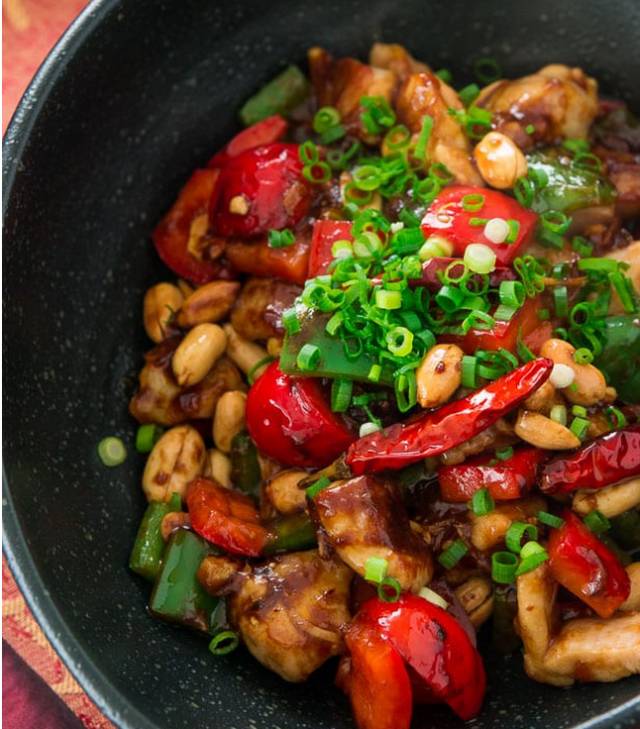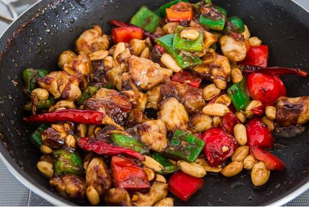鸡肉,花生,淀粉,食用油,大蒜,花椒,干辣椒,青辣椒,黄酒,
