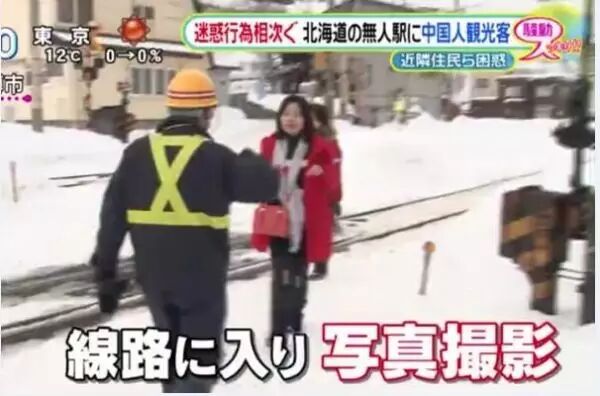 另据香港《东方日报》网站2月5日报道,今年春节,大批中国游客涌到各地旅游,造就全球“黄金周”,但他们部分不文明行为却令人汗颜。有日本电视台日前直击中国游客在北海道的种种行径,有人不但无视警告擅闯民宅,玩弄积雪滋扰民居,甚至有人擅闯路轨拍照致列车急刹车,事后还称“没关系”。