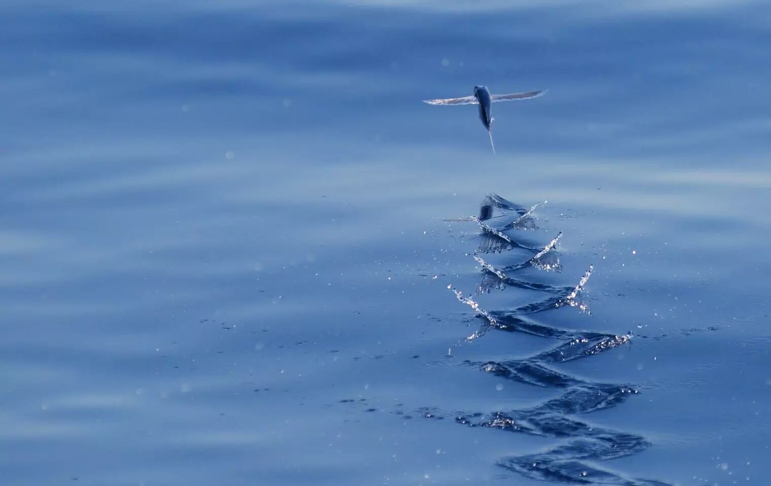 NO.8 飞鱼 飞鱼得名于它独特的避难方式。遇到捕食者时,飞鱼会采用一种独特的逃跑方式:它会纵身一跃,跳出海面。此时它的速度可达到每小时35英里,在空中滑翔长达30秒。这一跃能使它们飞行200米,足以使它们全身而退或者迷惑捕食者。渔民们很是钟爱这种鱼,野生飞鱼数量众多,所以40种飞鱼中没有一种濒临灭绝。人们发现飞鱼有时会季节性的在温水区近郊地带的杂礁灰岩附近觅食,不过它们属浮游类鱼类,喜欢在赤