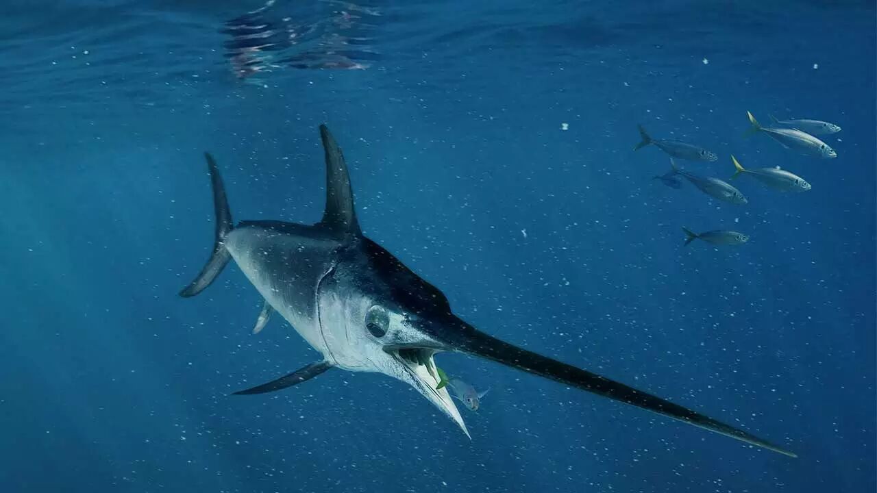 NO.2 旗鱼 旗鱼虽是马林鱼的近亲,却分属于不同的家族、截然不同的物种。它们广泛分布于全球热带、亚热带海域。由于过度捕捞,相关保护机构已将旗鱼列为濒危物种。非选择性的捕捞也间接威胁到了海龟等其他海洋物种。它们在水中跳跃的时速可达50英里,游泳时速可保持在60英里。与长嘴鱼族群一样,旗鱼也偏爱开阔的水域,冬季会洄游至气候相对温暖的水域。