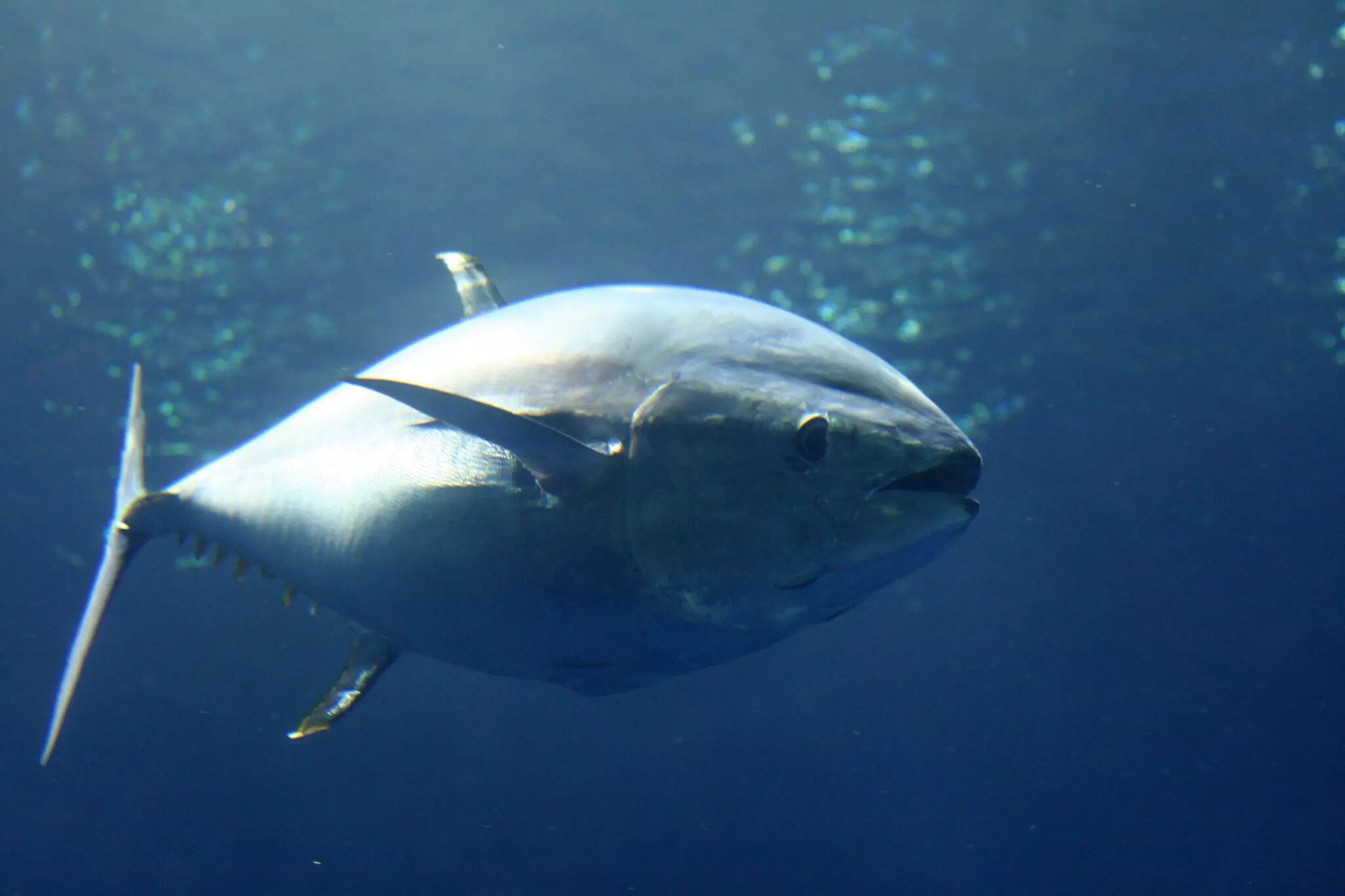 NO.9 鲣鱼 这个外形颇像马鲛鱼亲戚的鲣鱼(狐鲣属)时速最快可达40英里,真正令人惊叹的是它们可以以30英里每小时的速度游上好几小时,相比其它同体型的鱼类,鲣鱼可谓个中翘楚。腹鳍快速抽动的肌肉组织是超强爆发力的坚实保障,背鳍抽动较慢的肌肉组织则保证了竞速时的惊人耐力。