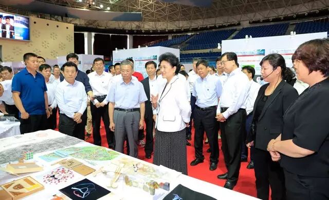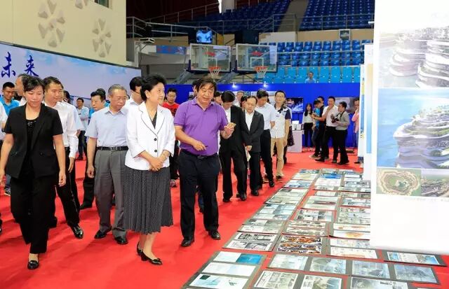 ▴ 刘延东一行参观全国大中学生海洋文化创意设计大赛历届优秀作品展 (刘邦华 摄)