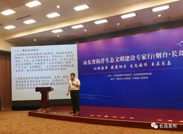 专家结合自己专长和研究领域,讲解生态文明建设政策,介绍相关经验,就烟台和长岛海洋生态文明建设发表建议。