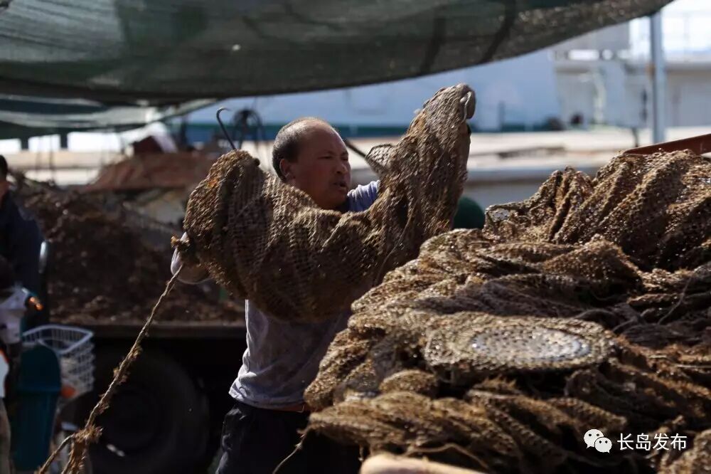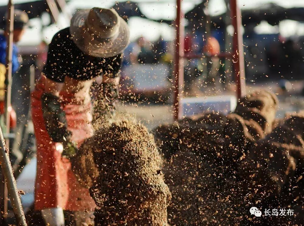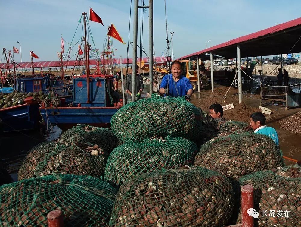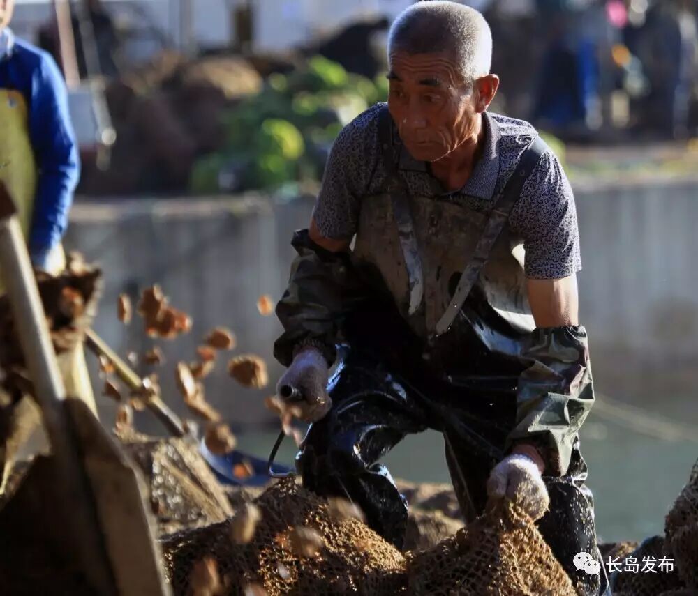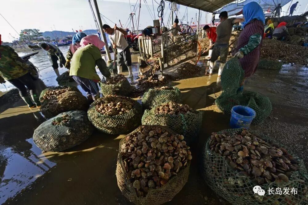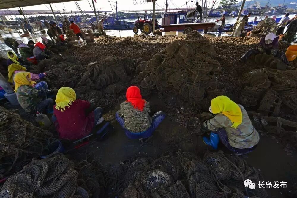 长岛是中国的扇贝之乡,每到的扇贝收获季节,长岛的各个渔港码头一片繁忙,这也是北长山渔民最忙碌的季节,他们朝四晚十,手上的工作几乎不停,仅北城的一个码头,每天运往加工厂的扇贝就可达百万斤。扇贝收获不仅给外来的打工者提供了工作机会,也吸引着许多摄影师们前来采风,感受并记录下长岛扇贝收获季忙碌而盛大的场面。