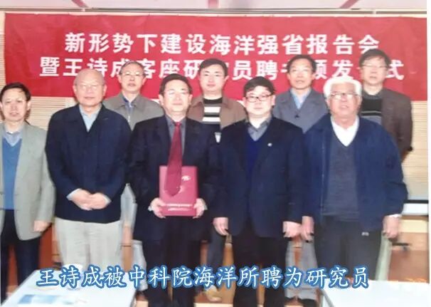 随着学术地位和知名度的提高,王诗成先后被授予“山东省专业技术拔尖人才”,被山东省委、省政府和地方政府聘为咨询专家和科技、经济顾问,被国家海洋局聘为国家海洋功能区划专家,王诗成以访问学者身份两次到韩国考察,应邀参加了30余场国际和国内各类海洋论坛,做主旨演讲、学术专题报告,成为享誉国内外的知名海洋学者。侯保荣院士在其《提名院士推荐意见》中写到“王诗成同志从事海洋与渔业工作40余年,是我国海洋界颇有建树的学者型管理工作者,有丰富的管理经验,取得了很高的学术成就。该同志提出的海洋强国(省)战略和海洋生态修复与治理理论,不仅丰富了海洋战略、区域经济、管理等相关学科理论,填补了我国海洋战略整体研究的空白,而且产生了重大学术影响和社会效益……,根据中国工程院院士候选人的标准和条件,我推荐王诗成同志为中国工程院院士候选人。”作为一名现任的厅级领导干部能被所在的省海洋与渔业厅、国家级学会和院士推荐,是对其学术和管理成就的最大认可和肯定,王诗成也把这种殊荣看作是对他的鞭策和鼓励。至此之后,尽管每隔两年有一次院士推荐和评选,王诗成再也没有报名参加,他以时不我待的紧迫感,把更多的精力投入到对海洋事业发展的推动上,但在许多业内人士的心里他是我国海洋管理战线上不可多得的“海洋工程管理院士”。