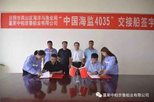 2017年6月20日上午,在京鲁船业举行了日照市岚山区海洋与渔业局200吨级海监执法船签字交船仪式,日照市岚山区海洋与渔业监督监察大队队长张平利和京鲁船业董事长王轰分别代表双方签字,日照市岚山区海洋与渔业局局长王均联、渔政站船长申为逢,京鲁船业副总经理郭书远等见证了此次活动。