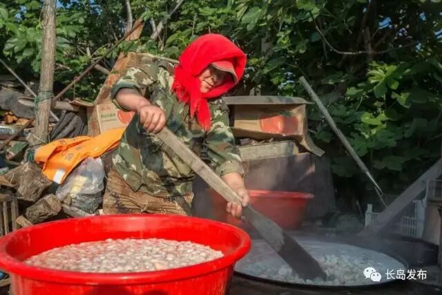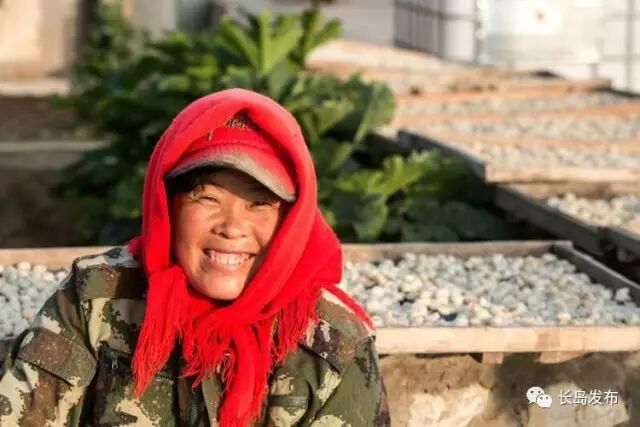 渔嫂黑红的脸庞绽放出的笑容让我们看到了岛民们劳累中有收获,收获里有喜乐的生活。