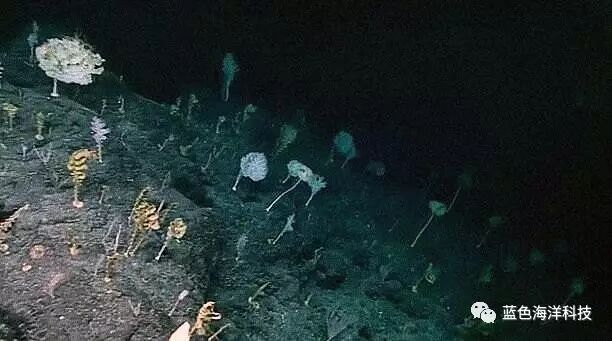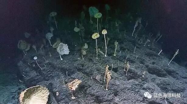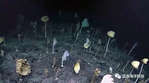 在7700英尺(约2347米)的海底世界里,生长着几十种神秘的茎干形状的物种,它们形状各异,而且颜色鲜艳,这一奇特的海底景象让科学家们都不敢相。