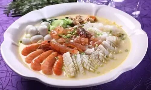 如果使用的海鲜品质足够好,那么熬制时加入清水足够了。但是如果在封海期,或者选择的是品质不那么好的海鲜原料时,我们就要加入适量的汤,这样可以有效补充菜肴的鲜味。