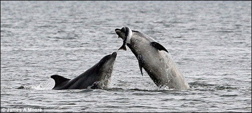 据英国《每日邮报》报道,业余摄影师詹姆斯·摩尔近日在英国因佛内斯附近的一片水域拍到了宽吻海豚群捕猎野生鲑鱼的精彩组图。